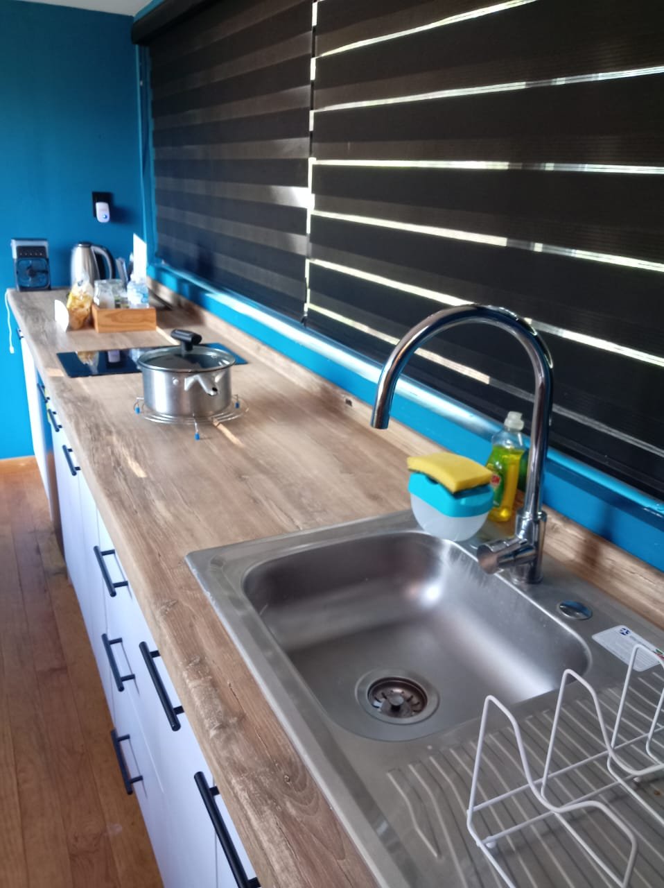 Cocineta moderna, cómoda para disfrutar tu estadía.