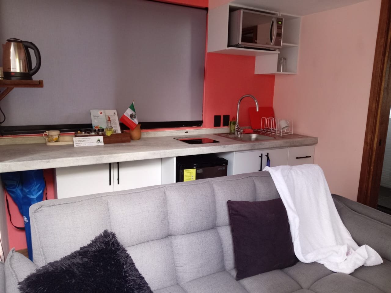 Equipada con una cocineta para que puedas preparar una cena o desayuno a tu gusto.